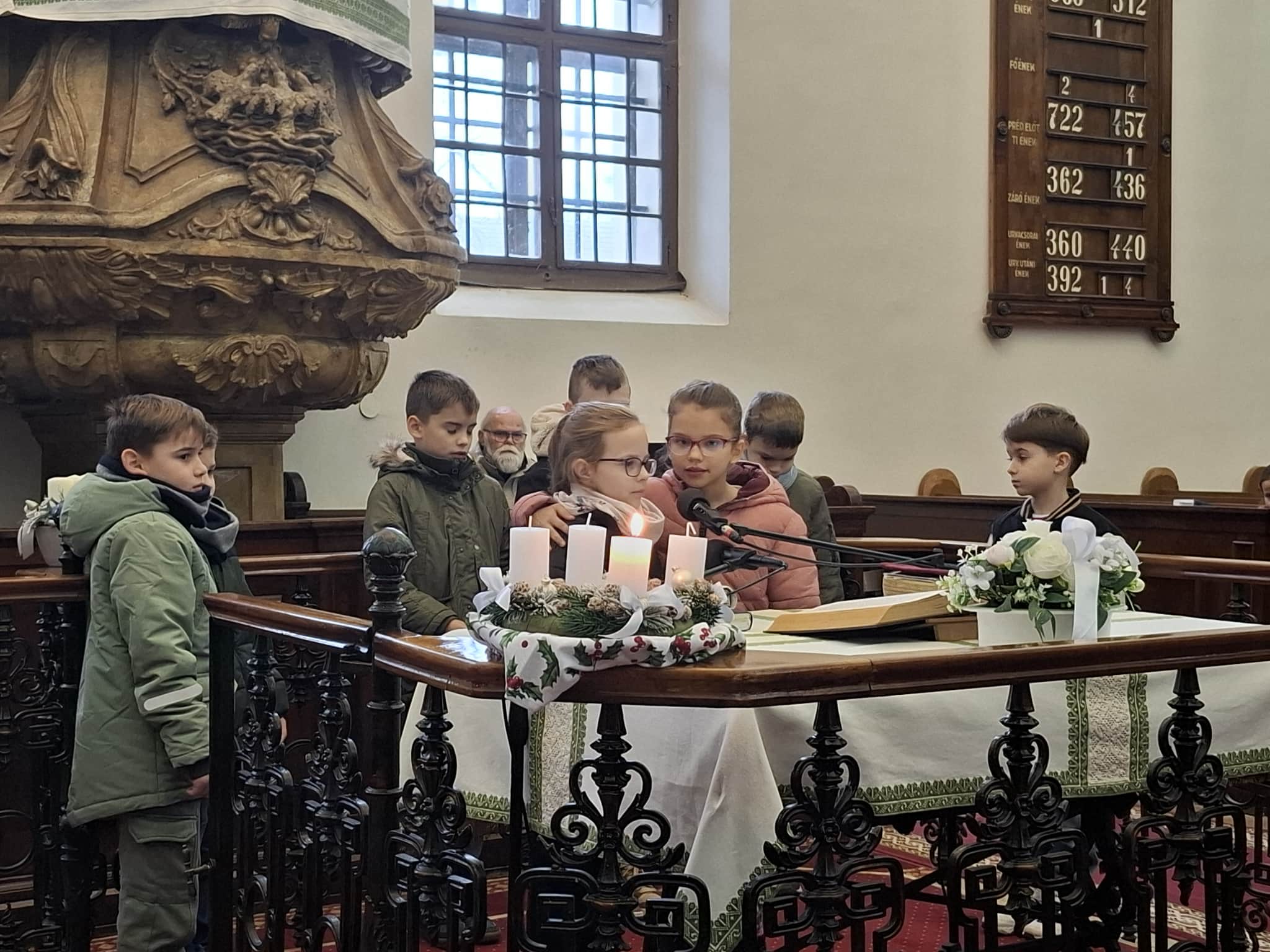 Iskolánkban hagyomány, hogy advent idején a hétfő reggeli templomi áhítatok keretében egy-egy osztály, évfolyam énekekkel, versekkel szolgál. 2025. dec. 1-én Szabó Katalin lelkipásztor ünnepre hangoló áhítata után a 2.A osztály tanulói állták körül az Úr asztalát. Versekkel, dicséretekkel hirdették Jézus Krisztus eljövetelét.